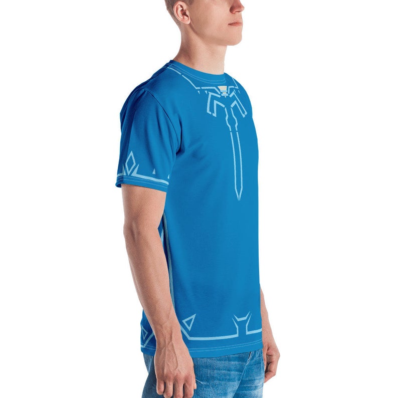 Whether braving the cold of the Hebra Mountains in search of hot springs or fending off Yiga Clan members, this tee is fit for a champion. This design, inspired by in-game clothing, includes a sword on the front and triforce on the back.