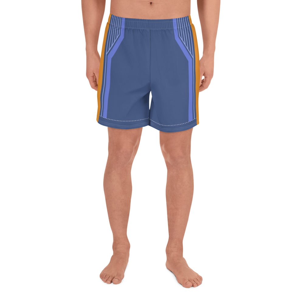Is it a mystical feeling that led you to this pair of shorts? This design, inspired by in-game clothing, features orange stripes with smaller light blue stripes set on blue.
