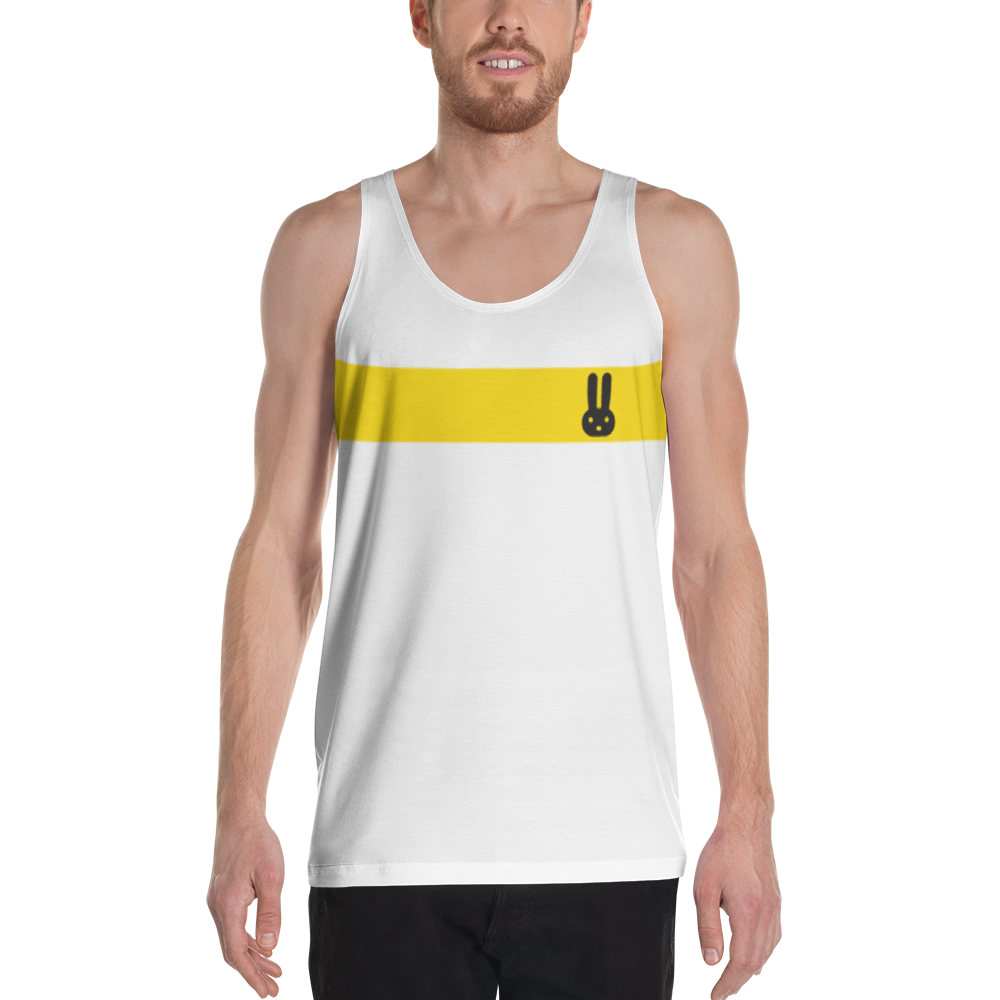 Whether for delivering mail or racing someone with a true competitive spirit, this tank top is just the right uniform to make this happen. Inspired by in-game clothing, this design includes a bold yellow stripe with a black bunny on it.