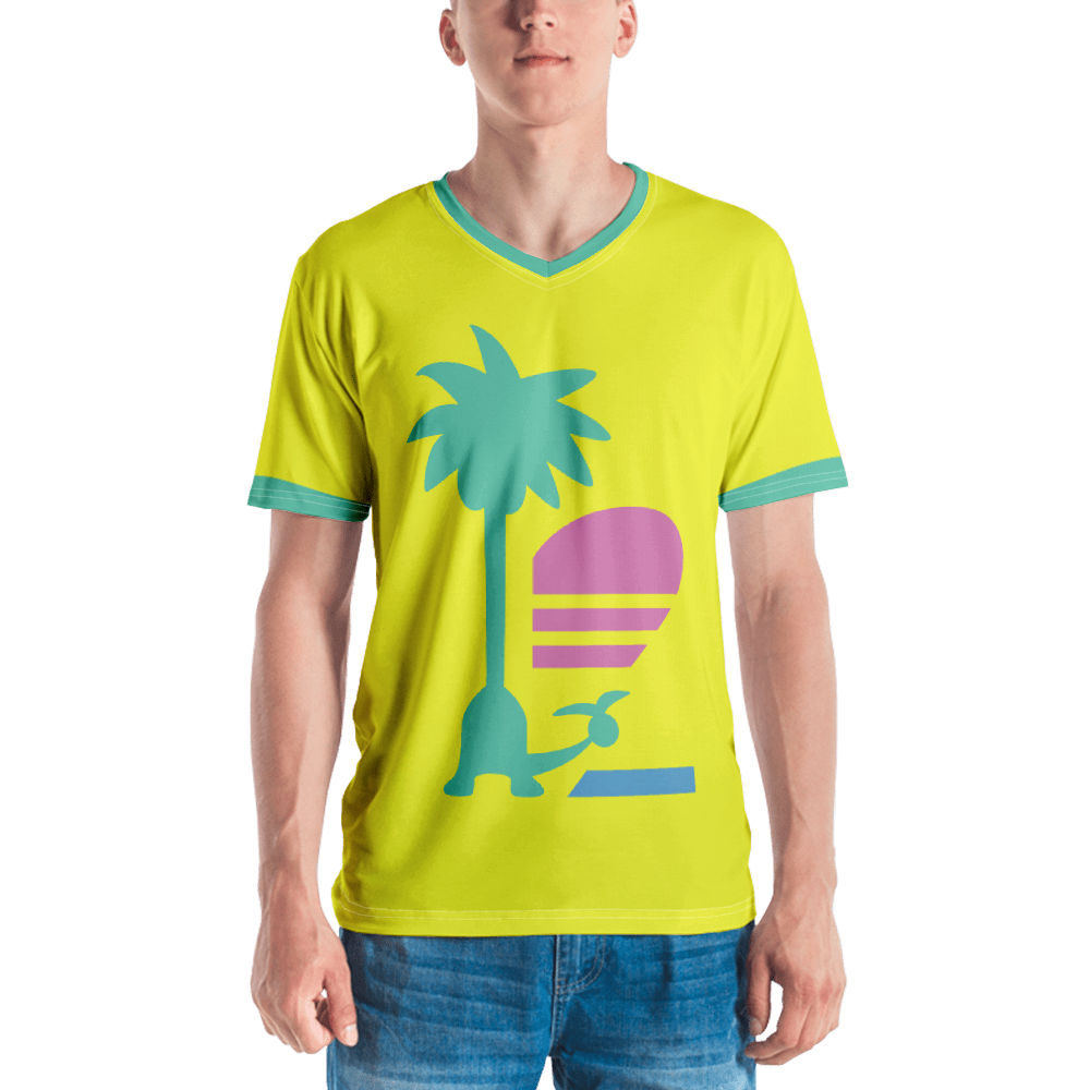 Look your best while taking on trainers across the Alolan region (or wherever your adventures take you). This design, inspired by in-game clothing, includes a giant palm tree and a setting sun.