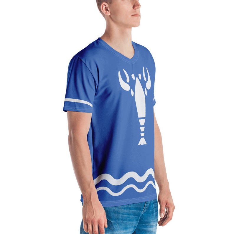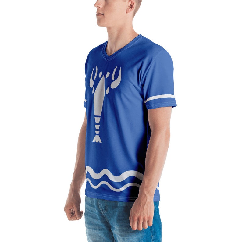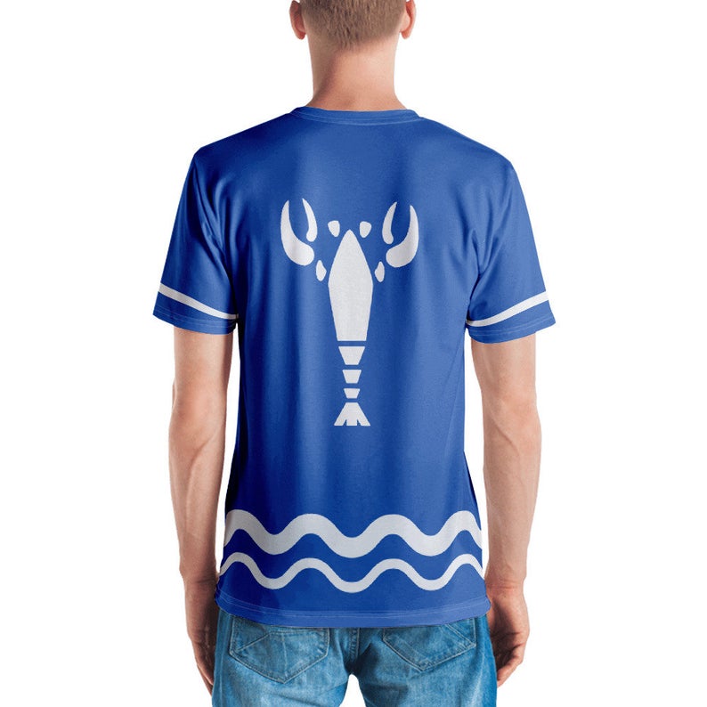 Whether for sleeping in or just being comfortable on your adventures, this tee is bound to delight. This design, inspired by in-game clothing, includes a large lobster on the front and back with waves on the bottom.