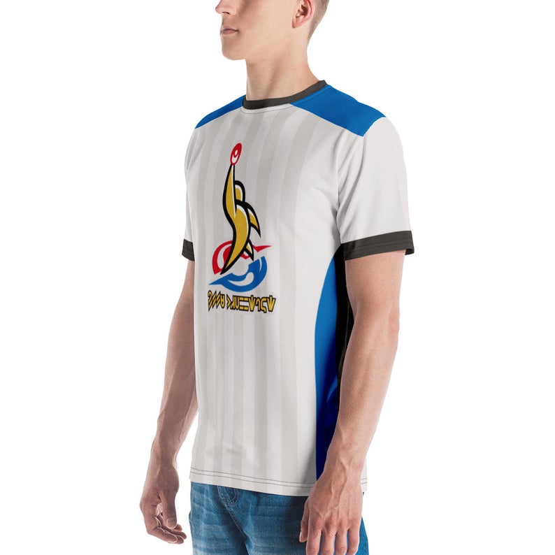 Do you have what it takes to become champion? Look your best while taking on gym challenges (or wherever your adventures take you). This design, inspired by in-game clothing, includes a logo of a person throwing a ball on the front and the number 198 on the back.