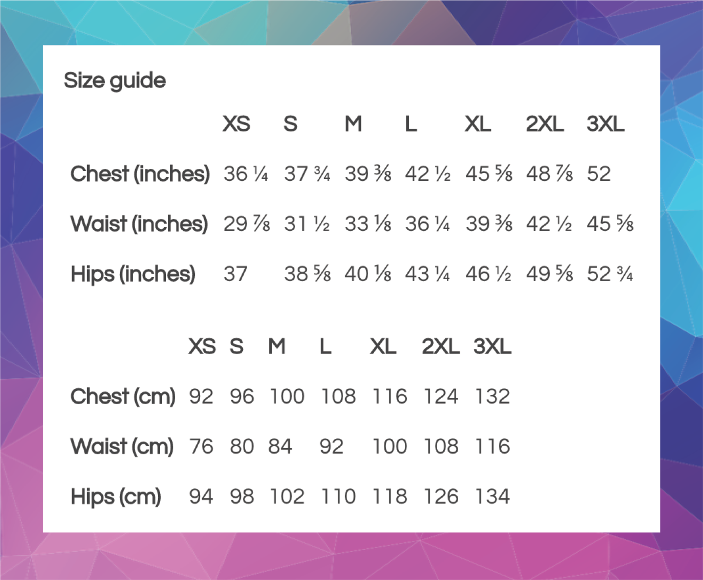 Please refer to the last image for correct sizing information before ordering. Measure yourself along the corresponding part of your body and compare the measurement to this chart.